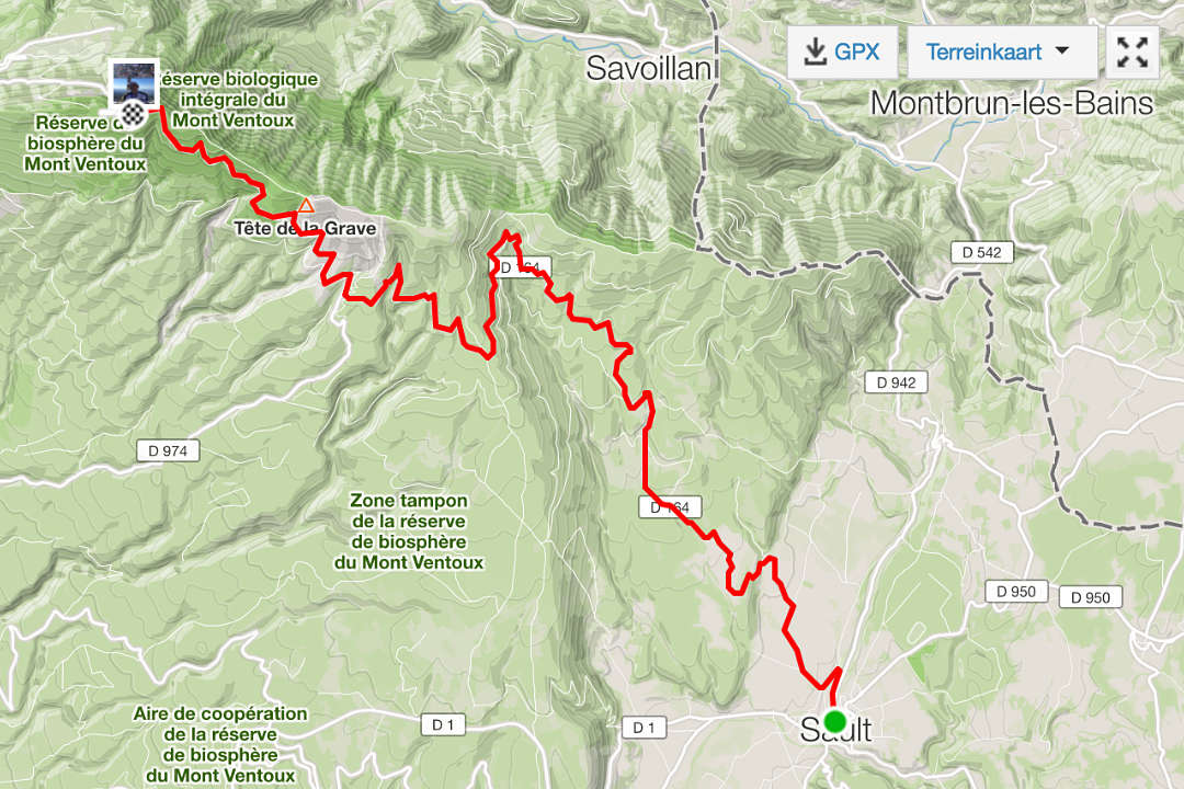 Veel tijd om sentimenteel te zijn krijg ik niet, want de deelnemers worden naar voren geroepen. Vlak voor de start volgt het moment van stilte dat ik al een aantal keren heb meebeleefd. Het blijft indrukwekkend. De intensiteit van deze minuut is tastbaar, en het startschot voel bijna als een bevrijding. Enthousiast zetten we ons in beweging, de hardlopers voorop. De eerste anderhalve kilometer naar de top gaan omlaag en de conditie is nog honderd procent, dus is er nog adem over voor korte gesprekjes. Als de weg in de uitgebloeide lavendelvelden onder Sault omhoog gaat lopen, vallen de deelnemers langzaam stil. In de verte, al een een flink stuk hoger dan de rest, beweegt een silhouette richting het bos. 'Een echte hardloper', beoordeel ik de zwarte gestalte met respect.