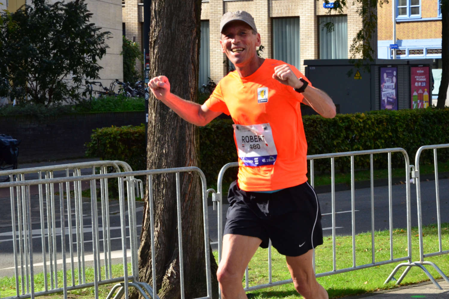 Bewust de luwte van andere lopers opzoekend, om me heen kijkend op zoek naar bekende plekjes uit mijn studententijd, luisterend naar het lopers-geouwehoer van de mensen om me heen, ren ik kilometer naar kilometer stuk. Warm is het nog niet en het lijf voelt nog heel krachtig. Weer terug in het centrum van Eindhoven zie ik mijn lief staan. Extra zelfverzekerd en breeduit lachend loop ik haar voorbij. ‘Het gaat goed. Bijna te goed’, schreeuw ik naar de overkant.