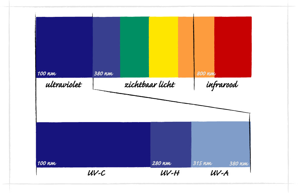 Er is energie voor nodig om de verbindingen tussen atomen te verbreken. Als energiebron wordt hiervoor ultraviolet (UV) licht gebruikt met een golflengte tussen de 100 en 380 nanometer. Dit is een deel van het spectrum aan elektromagnetische, voor het menselijk oog niet zichtbare, straling die onze eigen zon uitstraalt. Uit de scheikunde is bekend dat het verbreken van verbindingen tussen atomen meer energie kost dan de energie die de atomen bij elkaar houdt. Het energieniveau van UV-straling is echter vrij zwak. Het kan slechts heel zwakke atoomverbindingen verbreken, bij lange na niet genoeg om de methyl methacrylaat moleculen te 'kraken'. Er moest dus een list worden verzonnen om UV-licht te kunnen gebruiken om verf en inkten te kunnen drogen.