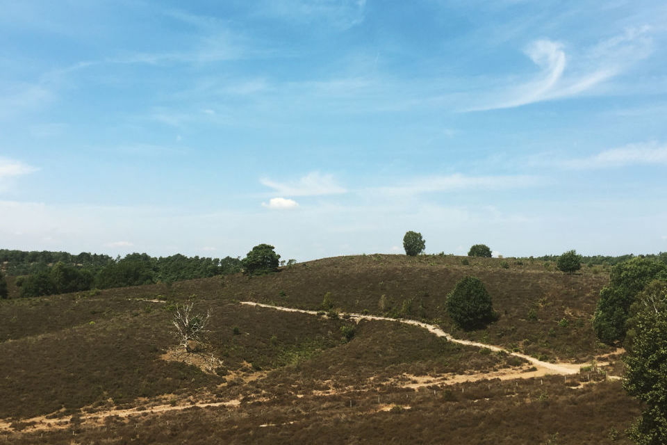 Zijn lekkernij vergt extra aandacht. IJsjes houden niet zo van warmte, daar gaan ze stuk van. Behendig weet zijn tong de stortvloed in te dammen, wat best opmerkelijk is voor iemand die beweert niet zo van ijs te houden. Deze zomer heeft zijn stelling dan ook voortvarend weten te ondergraven. De blik valt op de kades van de Hanzestad aan de overkant en de rivier die daar nu heel voorzichtig langs schuurt, het water zonder haast dat de wielrenner vanochtend een stuk verder stroomopwaarts is overgestoken. Het eerste klimmetje van de dag bracht hem hoog boven de IJssel, een brug tussen het waterrijke gebied van het zuidwesten van Drenthe en de hoger gelegen zandgronden van de Veluwe. Vele rimpelingen over trappend ging het naar het hoogtepunt van de dag, de Posbank.