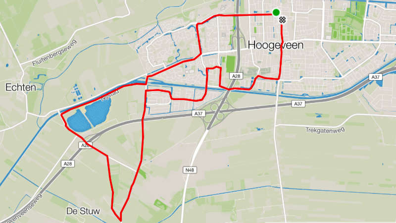 Nog steeds niet helemaal gerust op een goede afloop, wordt een halfuur later na vijf keer ochtendgroet en licht ontbijtje een niet te lang loopje met losmaak- en rekoefeningen afgewerkt. Goed om het lijf te activeren en vandaag ook om te zien hoe dat net niet zieke lichaam zich onder deze lichte belasting houdt. Het blijkt meer zweet te produceren dan nodig is voor zo'n slakkentempo. Maar in beweging zijn voelt lekker. Het besluit is genomen: 'We doen het. Vanmiddag gewoon aan de start in Hoogeveen.'
