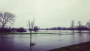 Na het keerpunt bij landgoed Dickninge toonde ook de Reest een historische aanblik. Ooit schaatste men over de watervlaktes die het stroompje van zijn dal had gemaakt naar Meppel. Na een lange periode van een ingedamd bestaan mag de Reest de laatste jaren het groen aan weerskanten weer laten overstromen. De eigenaar van het weiland bij Lankhorst lijkt hier goed op te zijn voorbereid. Wie goed kijkt, weet overigens wel beter...