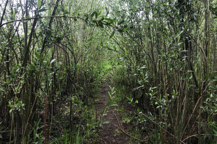 Helemaal aan het eind van de bezoedelde groenstrook slaat de safari na het spoortunneltje direct rechtsaf het Meppeler Bos in. Ook dit stuk groen is niet helemaal eenzaam, maar de hardloper weet dat ie op weg is naar een paar honderd meter vrij weinig gebruikte natuur in Meppel. Dat begint na een matig onderhouden brug over de Wold Aa en brengt de hardloper op een extra smalle single track met een hoog safari-gevoel. Zo vroeg in het seizoen gaat het nog wel, maar over een paar maanden moet je letterlijk de takken met de hand wegslaan om je een weg te banen, is de ervaring van eerdere ontmoetingen met dit paadje.