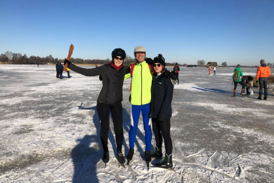 Als de Bovenwijde volledig gerond is, keert het drietal over fijn ijs terug naar het vertrekpunt. Voor Lidia is het genoeg. De andere twee stellen het einde nog even uit. Zoeven een aantal keer heen en weer over een redelijk glad bevroren sloot, terwijl de derde haar telefoon vult met sfeerplaatjes van deze winterdag. Wanneer het voor iedereen genoeg is, stapt een tevreden drietal in de auto. Op weg naar Meppel ontstaan de plannen voor morgen al.