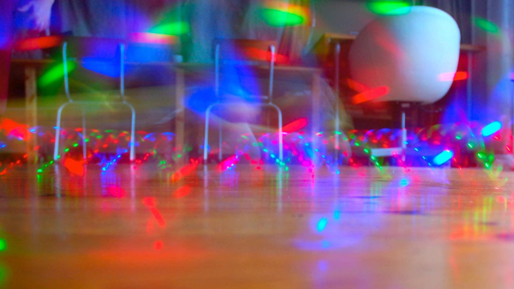 Umai demonstreerde vanavond haar QQ Dancewheel. De jongens vroegen of alle lampen uit mochten. Natuurlijk, geen probleem. Al bijna routineus liet Umai de ring rond haar been draaien.