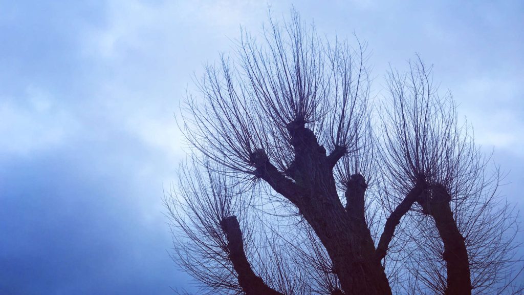 Een boom, in alle rust wachtend op de lente. Lage temperaturen laten hem koud. Onverschillig voor passanten, maar zich heel bewust van de seizoenen. Klaar om te ontwaken. Wanneer de tijd rijp is.