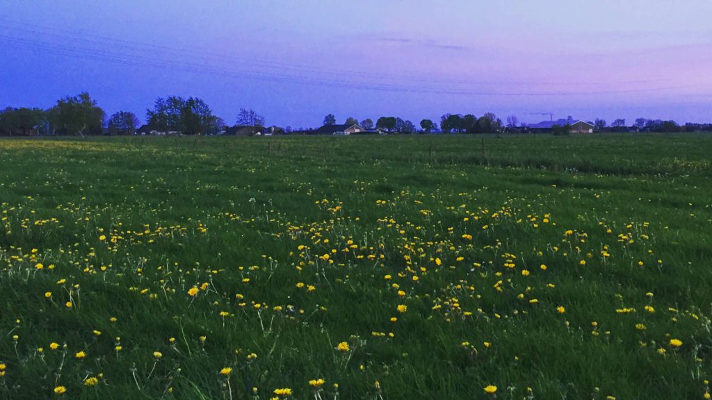 Ik kom het steeds vaker tegen: weides met ‘ouderwetse’ bloementapijten erin. Mooi en – opa spreekt – zoals het hoort! En het sfeertje tussen die weides net na zonsondergang is zó bijzonder. Echt een heel prettig deel van de dag om hard te lopen!