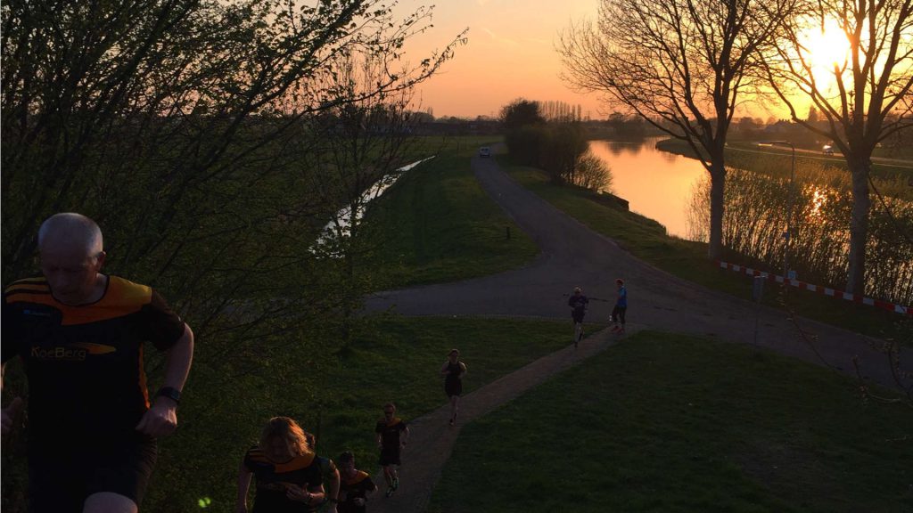 Leuke intervaltraining gedaan met de leden van de Koeberg loopgroep. Het was nog net licht, dus kon iedereen zich lekker uitleven op de achtendertig treden van de trappen aan weerszijden van de brug bij de Intratuin.