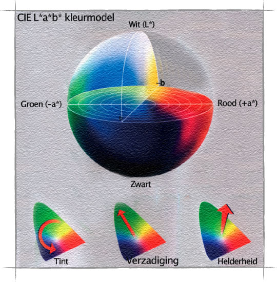 CIE bedacht in 1976 een verfijning in de vorm van het CIE-Lab model. ‘L’ definieert daarin de helderheid, terwijl de ‘a’ de verhouding vastlegt tussen rood en groen in een kleur en ‘b’ de verhouding tussen de gele en blauwe tinten van een kleur. Aldus ontstaat een bol waarin alle kleuren met dezelfde helderheid in een cirkelvormig vlak liggen en de helderheid in verticale richting varieert . In zijn algemeenheid lijkt CIE-Lab op het HSV-model.