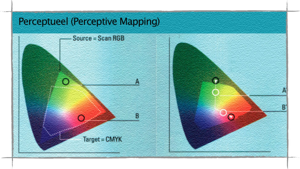 Hoe essentieel het ook is om het gamut van alle apparaten uit de grafische workflow te kennen, minstens zo belangrijk is een manier om de kleurruimte van een apparaat te vertalen naar de kleurruimte van het uiteindelijke uitvoerapparaat. Hiervoor is de Color Matching Module (CMM) ontwikkeld, die de profielen zodanig aan elkaar koppelt dat het eindresultaat op de pers zo goed mogelijk wordt voorspeld. De CMM zou bijvoorbeeld kunnen constateren dat een bepaalde kleur groen die een scanner heeft herkend, niet door een vierkleuren offsetpers met ongestreken papier kan worden gereproduceerd. Deze kleur groen moet nu binnen het gamut van de drukpers worden gebracht zonder dat dit opvalt. In de Engelse vakliteratuur heet dit proces gamut mapping, waarvan vier methoden bestaan. De eerste verplaatst kleuren op basis van de manier waarop het menselijk oog ze waarneemt (perceptual mapping). Bijna alle kleuren worden daarbij verplaatst, maar hun onderlinge relaties blijven intact. Het algemene kleurbeeld blijft hiermee goed intact.