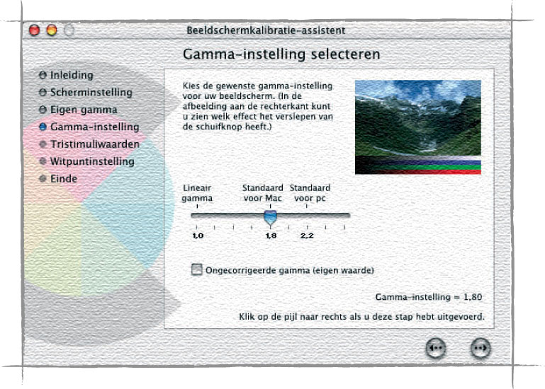 Kies in het daarop volgende scherm voor een doelgamut van 1,8. Dit is de standaard voor de Macintosh.