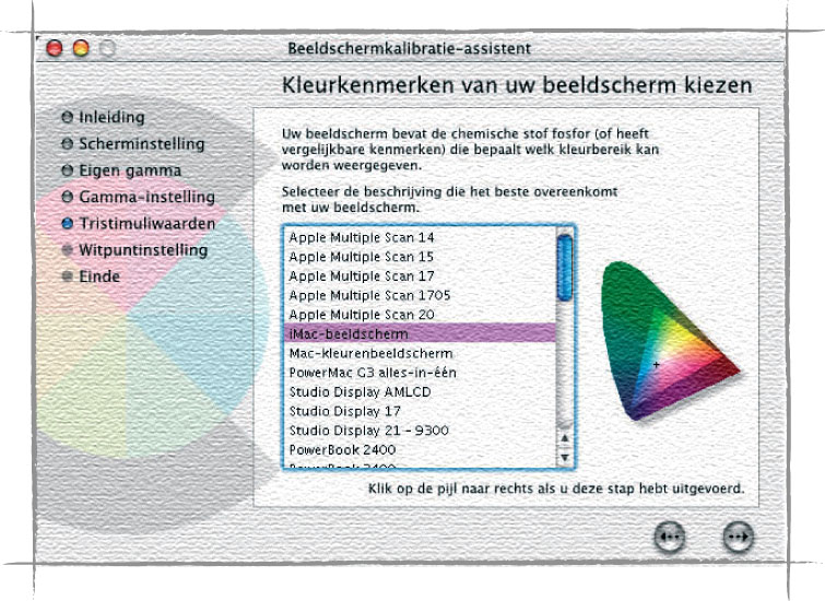 Selecteer nu uw type monitor. Indien deze er niet bij zit, kunt u een algemene omschrijving kiezen zoals ‘Mac kleurenbeeldscherm’.